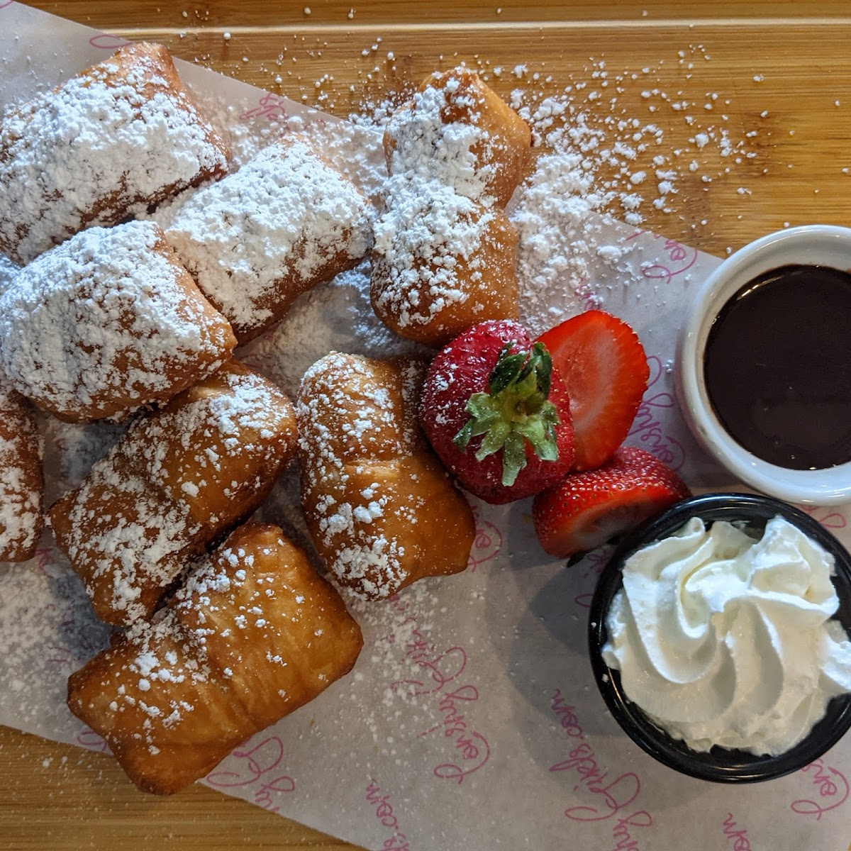 Beignet Board w Strawberries Chocolate and Whipped Cream